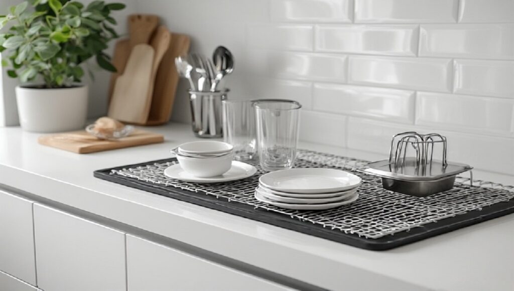 (Best for cups, glass, and lightweight dishes.) - Silicone drying mats – Heat-resistant, waterproof, and non-slip.